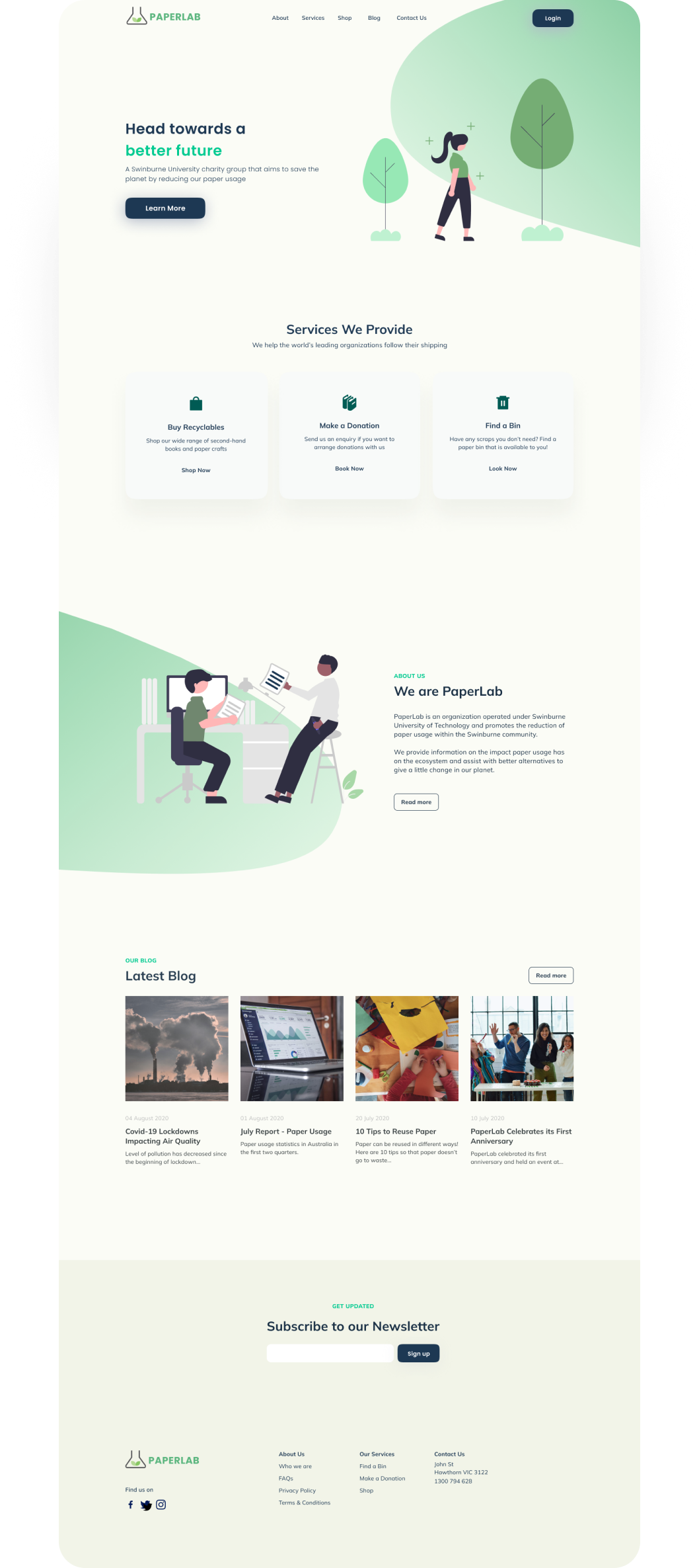 To find out what designs were trending and ways to make information cohesive, we looked into other existing sustainability websites based in Australia. When looking at our competitors, we analyzed each website based on simplicity, readability, ease of use and content information.